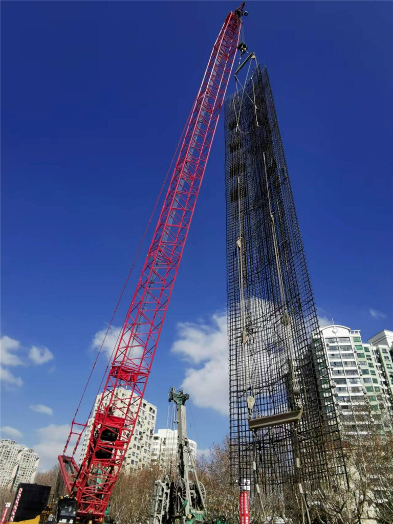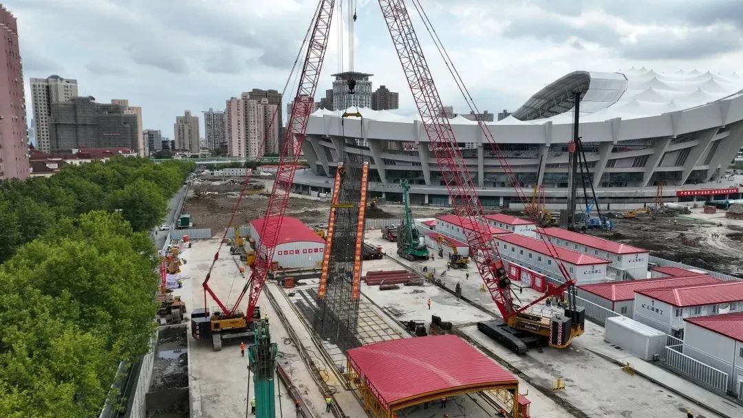 上海体育场地块东南角,一幅长41米钢筋笼缓慢起身,历时近1小时的起吊、调整位置后,钢筋笼平稳入槽,随着这一幅地下连续墙的完成,轨道交通23号线一期工程土建14标上海体育场站主体围护结构顺利完成,标志着23号线一期工程首个车站完成围护结构封闭。