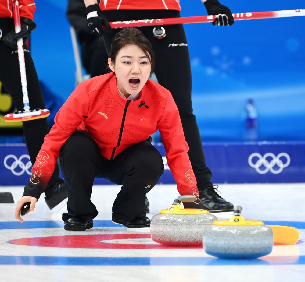 2022年2月10日,中国队选手韩雨在2022年北京冬奥会女子冰壶循环赛中。新华社记者 李贺 摄