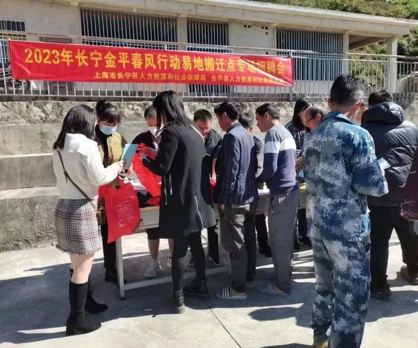 在金平县,长宁区人社局则连续开展了3场“易地搬迁点”专场招聘活动,向易地搬迁安置人员加强来沪就业宣传,进行招聘岗位介绍,其中“包食宿”企业直招项目颇受欢迎,每场招聘活动吸引百余人咨询。