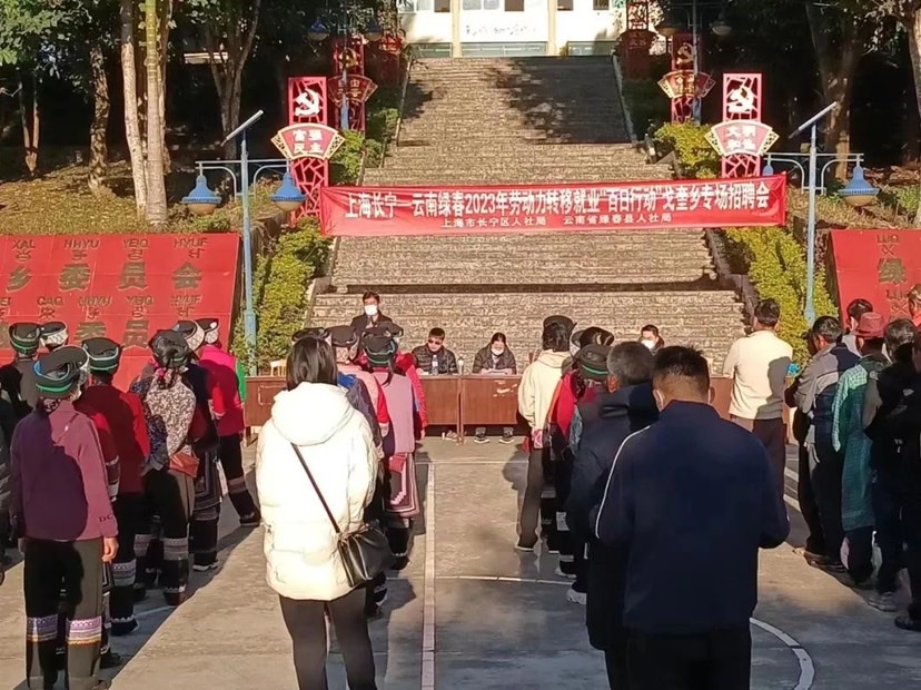 在绿春县,长宁区人社局举办了“招聘进乡村”就业帮扶活动,扩大就业帮扶服务覆盖范围,抢抓当地赶集等乡民集中的关键时点,在社区居民集中点、乡农贸市场、街边集市多点发力,面对面发放岗位宣介材料1000余份。同时,线上联通县就业驿站,为有需要的劳动者提供“就业招聘+职业指导+远程面试”等云就业服务。