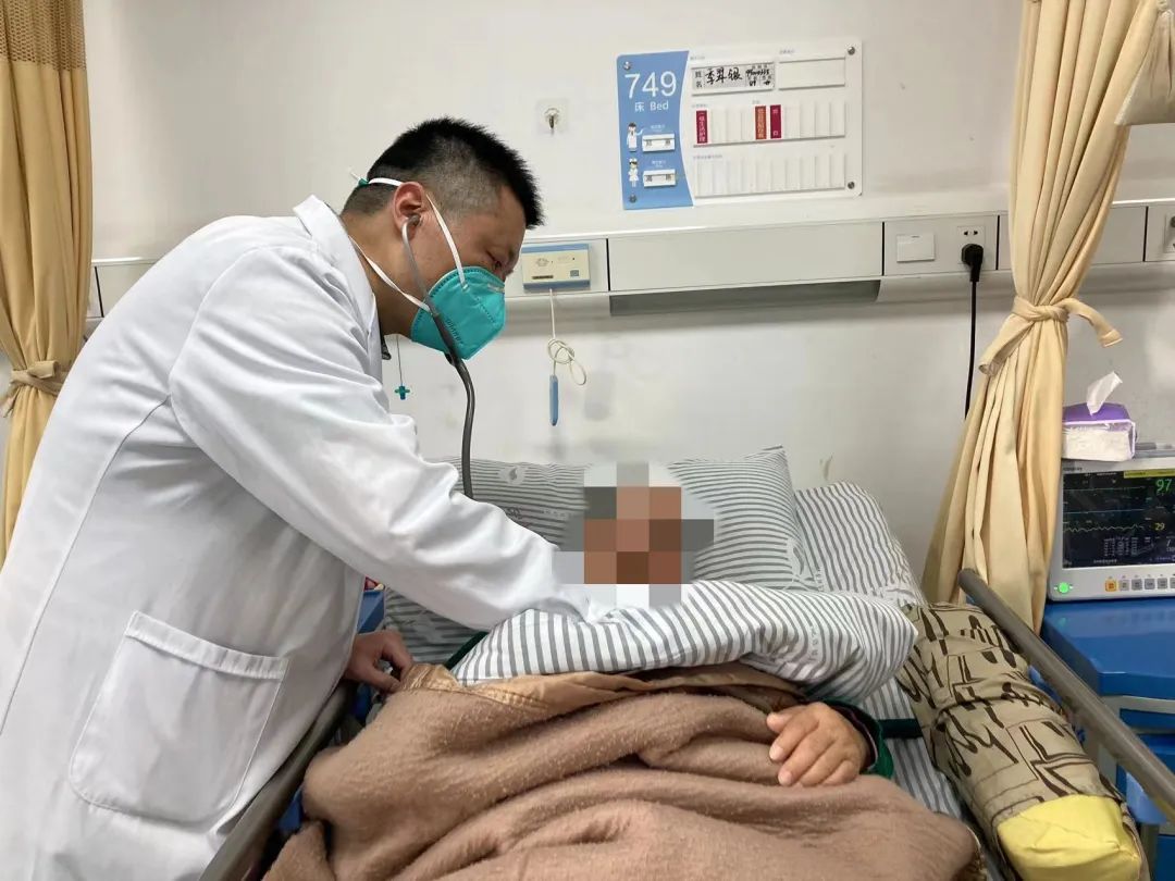 1月16日,在彭浦镇第二社区卫生服务中心(以下简称“中心”)病房,市北医院急诊科主任、副主任医师高新海正在给一位88岁的新冠感染老人问诊。