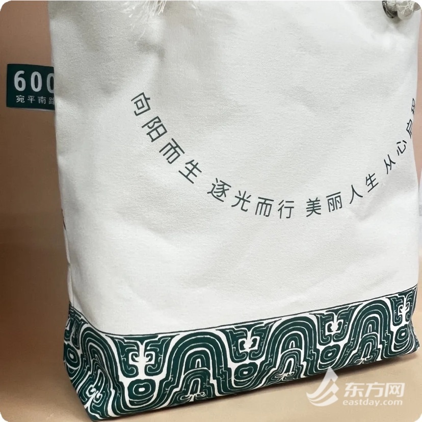 而帆布包的另一边,则是来自上海市精神卫生中心的殷切叮咛,16 个文字以笑脸一般的上扬弧线形态排列,含蓄地传递出“ 健康人生‘ 贵’ 在心理健康” 的理念。