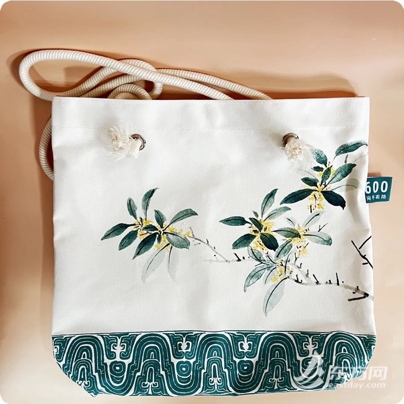 我国是桂花的故乡, 至今已有 2500 多年的栽培历史。 桂花不仅香气宜人, 亦是一味中药, 在《本草纲目》等药典中均有记载, 可理气活血, 解郁宽胸, “ 令肝气大舒” , 对平衡身心情绪、缓解精神压力大有助益。所以, 这一款帆布包, 其实也是一个时刻给予人提醒和关照的“ 情绪包”。