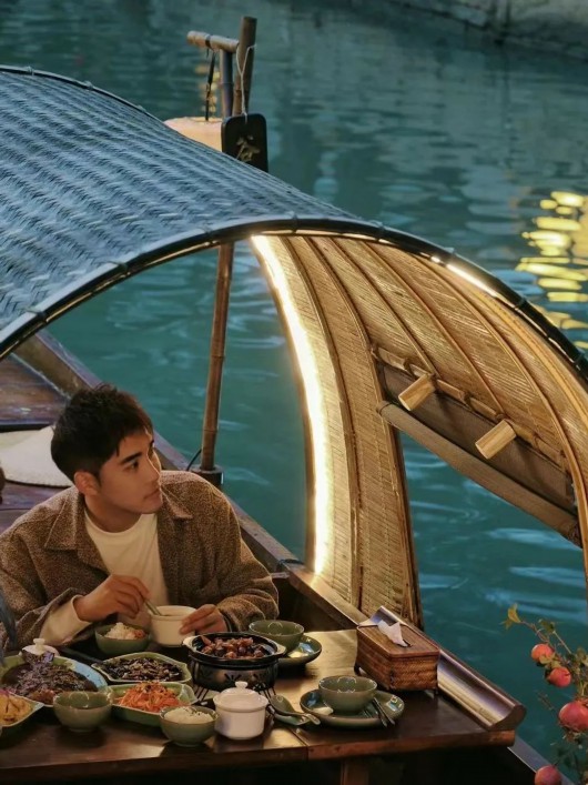 在“珠溪元宝船”上,品一场江南“珠溪船宴”。若恰逢落雨,泛舟河上,体验一场别样的江南烟雨。