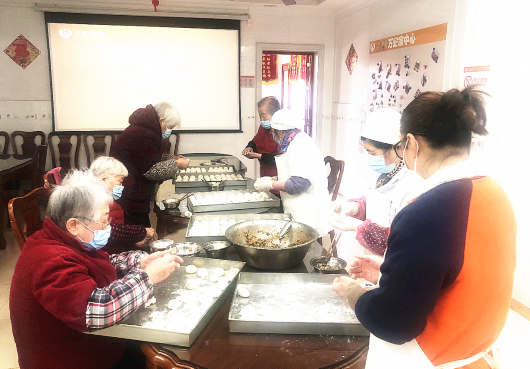 一个个雪白饱满的汤圆在欢乐的气氛中逐渐成型。下锅、捞起,不一会儿,一碗碗热气腾腾的汤圆就端到了老人们的手中。大家一起吃着汤圆,共同感受节日的氛围。