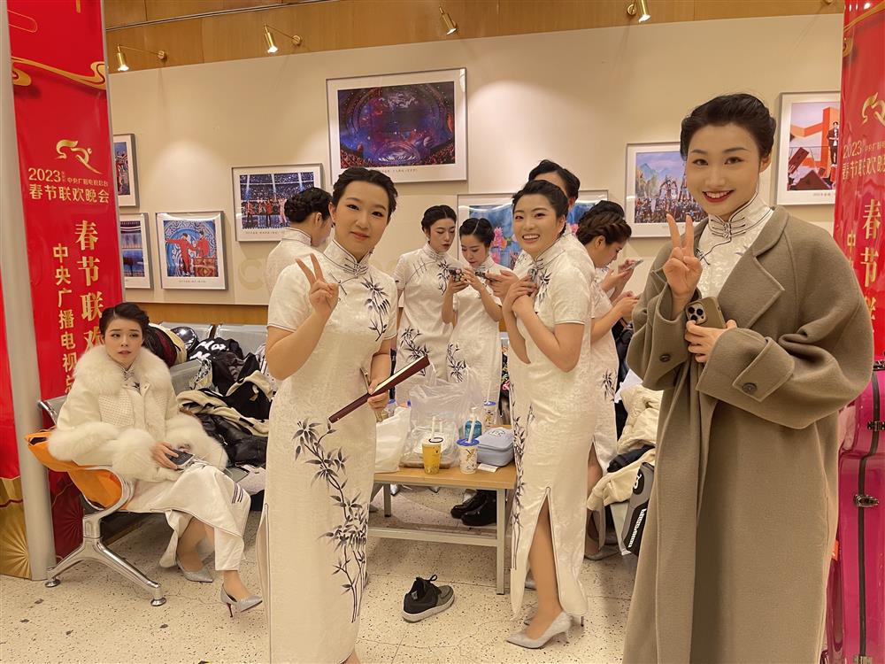 《新花好月圆夜》上海评弹团12位伴唱演员中,最年轻的只有21岁,尚在实习阶段。12人中有不少00后,除一人外,都是第一次参加央视节目。“对年轻人来说是很好的锻炼,长见识、长本事。”高博文表示,时间紧,演员们聚在走廊里吃盒饭,一遍遍等待、录制,一直录到凌晨两三点。