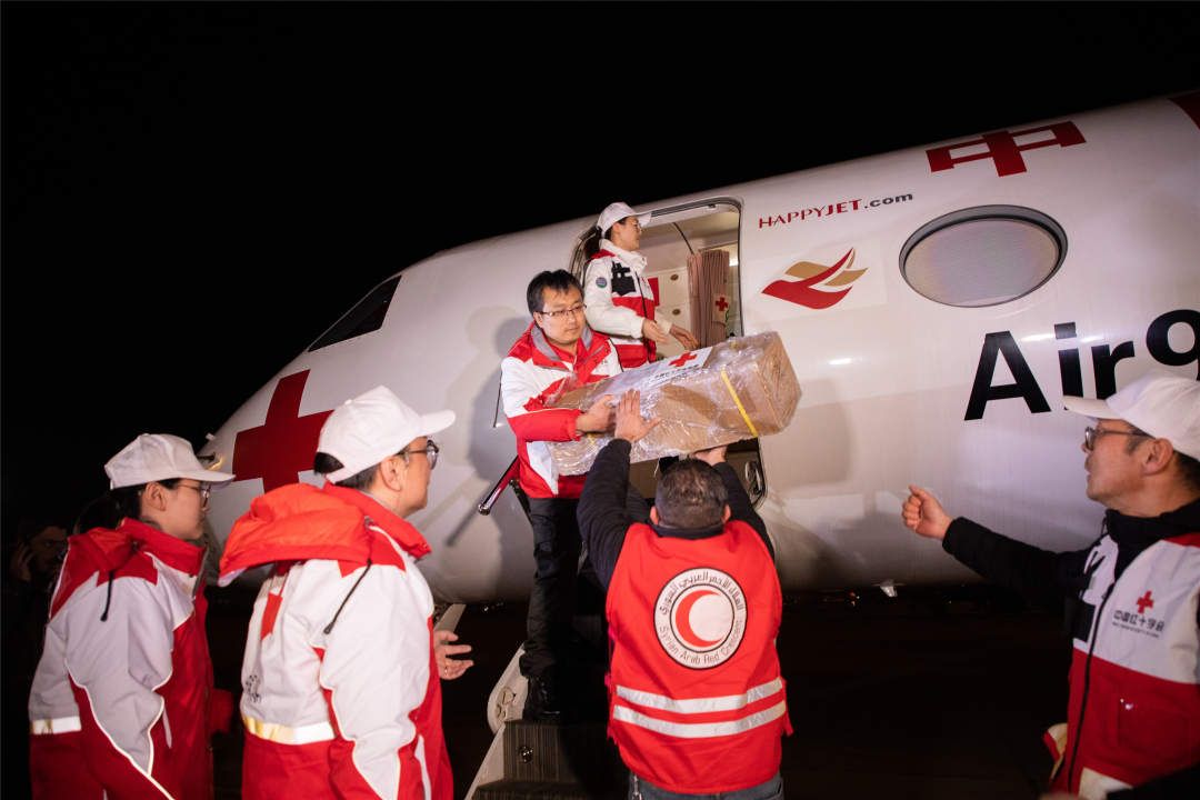 经过10余个小时的飞行,当地时间2月9日晚上7时30分,中国援助叙利亚的首批人道主义物资运抵大马士革国际机场。