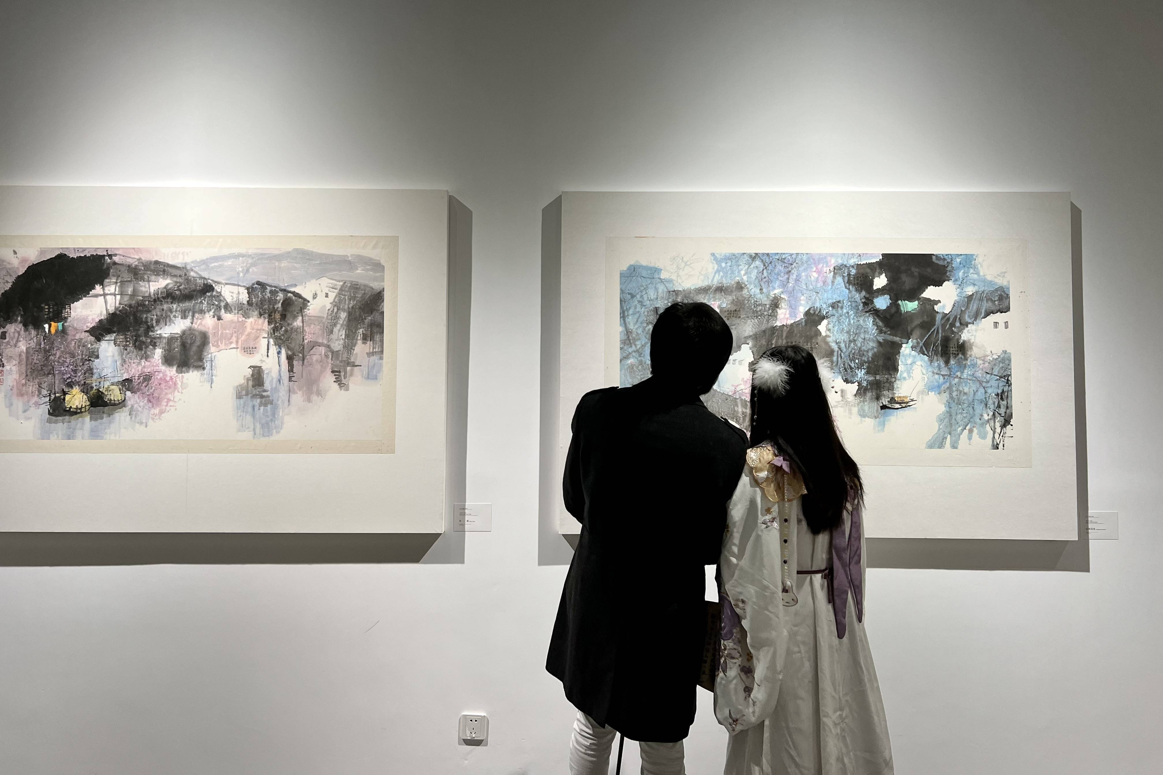 观众欣赏艺术展。本文图片均为 上海虹口 图