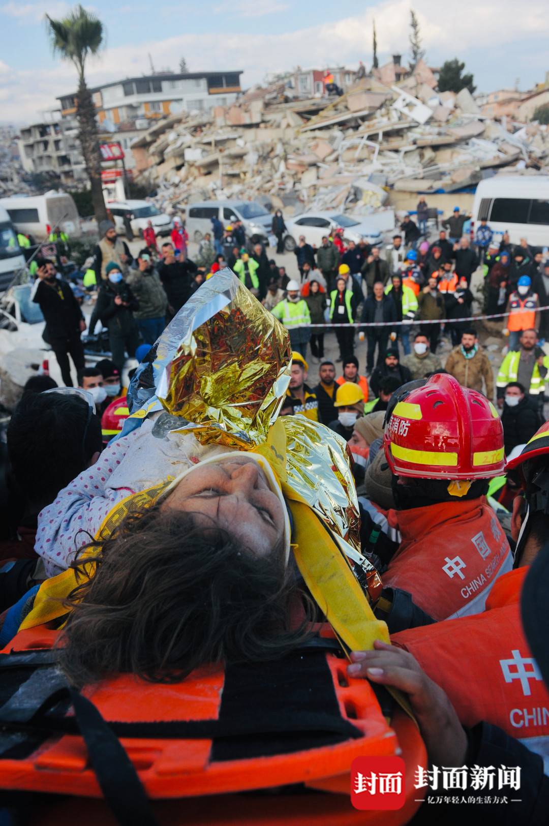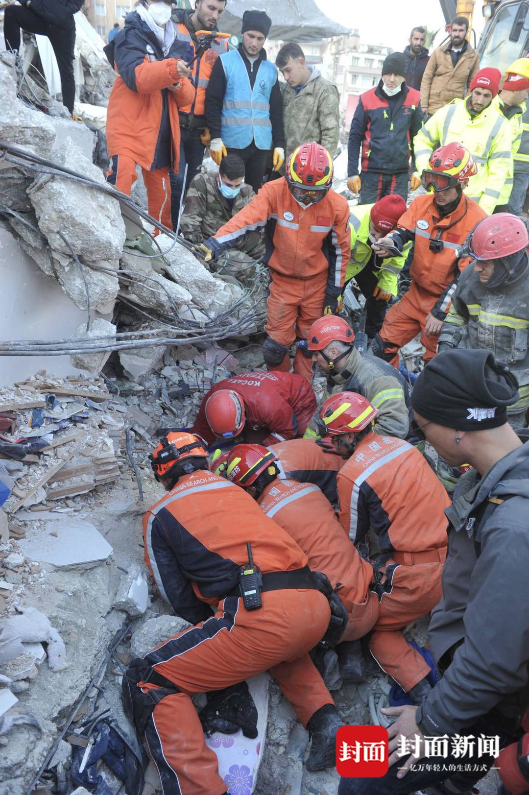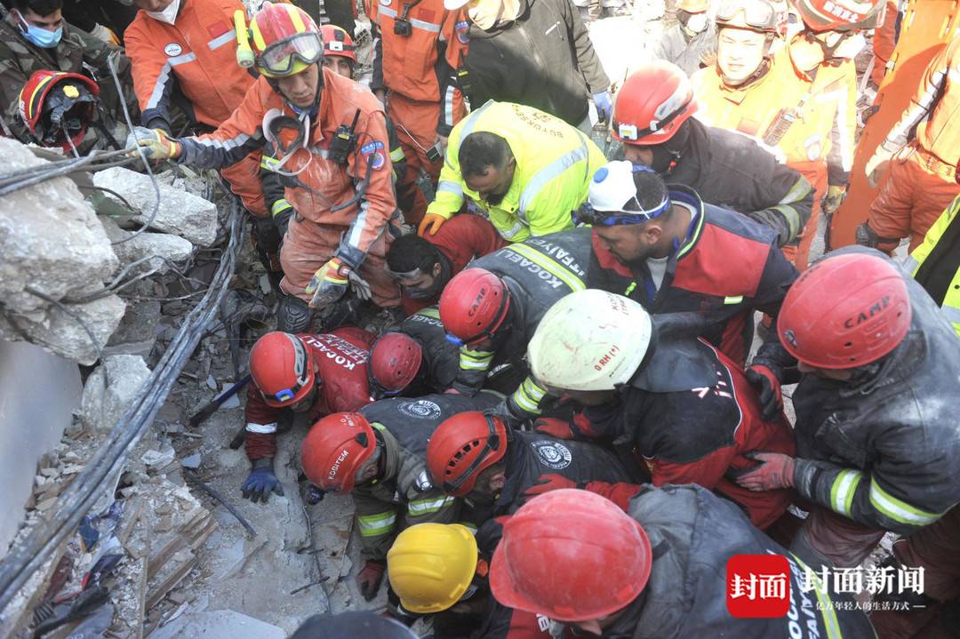 土耳其震区实录③|航拍中国救援队救出第四人现场:一片废墟之下的生命奇迹