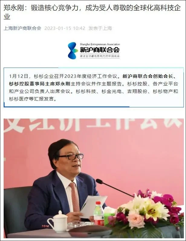 2023年1月,郑永刚还曾出现主持了公司会议。公开资料显示,1月12日,杉杉企业召开2023年度经济工作会议,郑永刚主持会议并作主题报告。
