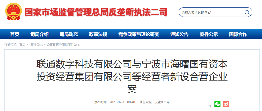 联通数字科技有限公司与宁波市海曙国有资本投资经营集团有限公司等经营者新设合营企业案.docx