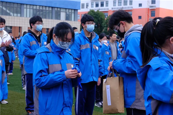 优秀学生代表高三6班宋依婷和高二4班黄子祺分享了自己的成长故事。在今天这个重要的时刻,学校赠与他们一枚徽章:自强者徽章,意味着永不止步的勇气,奋发进取的动力和破釜沉舟的实力;创新者徽章意味革故鼎新的勇气,百舸争流的锐气和破旧立新的士气。