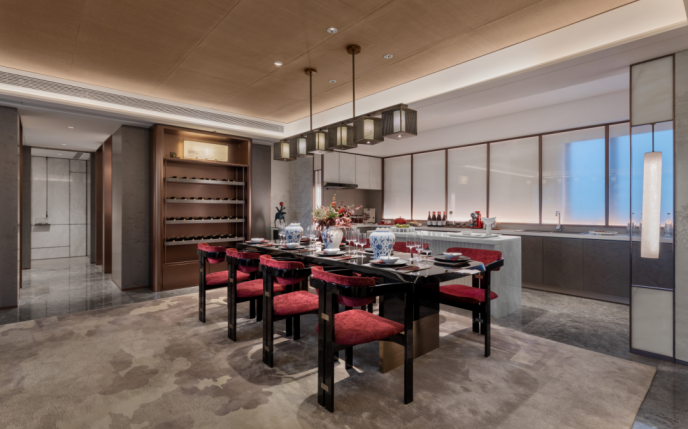 其户型总共承载10大采光面,无论是建面143㎡或165㎡,主要功能区和三间卧室均朝南,这意味着最大能享受到16.8米的主采光面。(文中图片均由贵阳中海映山湖提供)