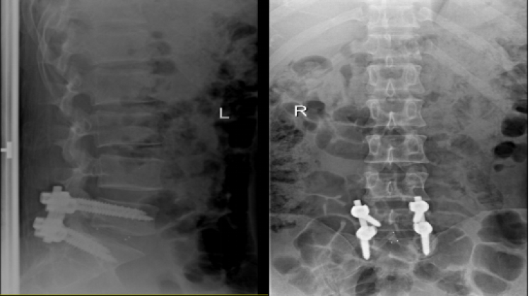 骨科何博主任、刘春主任带领手术团队周末加班为方先生行“腰椎间盘突出髓核摘除,cage植入,椎弓根螺钉固定术”。
