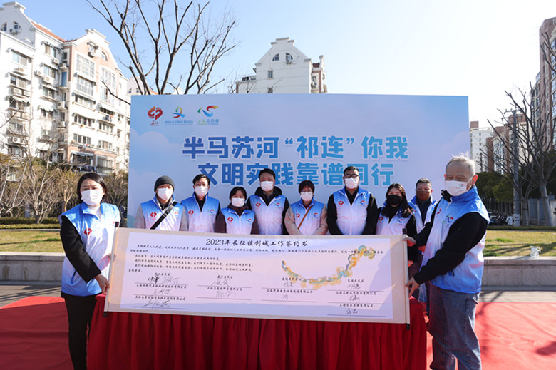 推进“半马苏河”建设,离不开每一朵浪花的激荡。在第60个学雷锋纪念日即将到来之际,普陀区长征镇推出“乐游河湾”文明行走地图,以全民健身行动的方式,同步打响祁连湾文明实践带品牌。3月3日上午,长征镇在祁连湾(建德地区段)举办“半马苏河‘祁连’你我 文明实践靠谱同行——2023年长征镇3.5学雷锋活动暨新时代文明实践行动日主题活动”。苏州河普陀长征段自嘉定流入(以西浜为界)。长征镇所属苏州河沿岸定名为“祁连湾”,目前已全线开通步道,周边有上河湾小区、贸易学校、加减乘除创意园等,并建成鱼鸟之恋绿地、海螺公园、及大片开阔草坪,是居民休闲漫步、强身健体的好去处。立足普陀发展实际和资源禀赋,更好服务“一江一河”战略实施,长征镇以普陀区“半马苏河”新时代文明实践带为新的起点,全力打造祁连湾文明实践带。为市民织好“蓝网”,建好“绿道”,绘就河畅水清、岸绿景美的生态图景,营造开放便捷宜人的公共空间,搭建共建共治共享的精彩舞台,让更多居民群众充分享受美好生活。据介绍,长征镇将以“半马苏河”新时代文明实践带建设为新的起点,充分整合党建引领下的基层治理力量,激活市民群众参与文明实践活动的积极性与创造性。