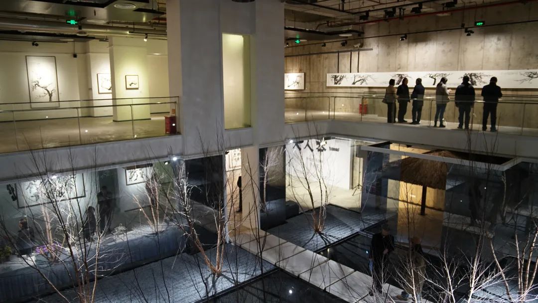 展厅中庭的“镜园”,将艺术家的作品折射成镜像融入园中,使得水墨线条蔓延到画卷之外,曲径通幽的艺术空间也为观众提供了全新的观展体验。