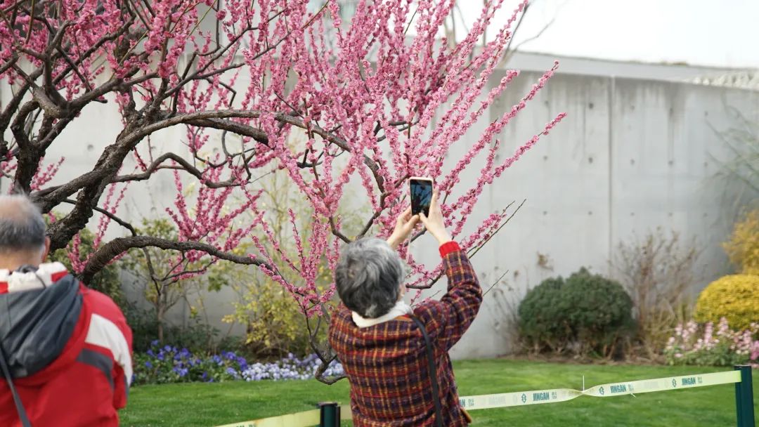 市民游客可以同时欣赏到各种梅花不同角度的美。