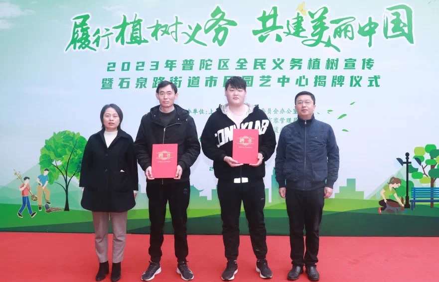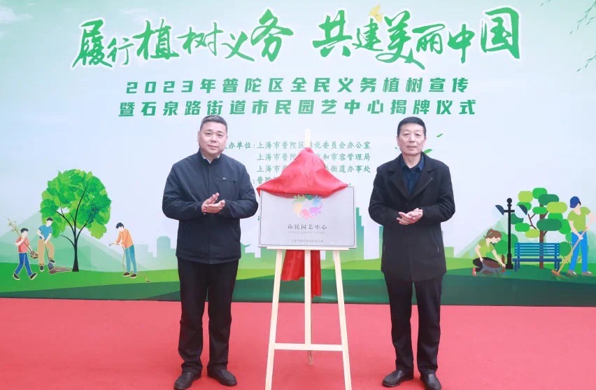 3月12日,“ 履行植树义务 共建美丽中国”2023年普陀区全民义务植树宣传暨石泉路街道市民园艺中心揭牌仪式在石泉“品尊源”党建街区举行。