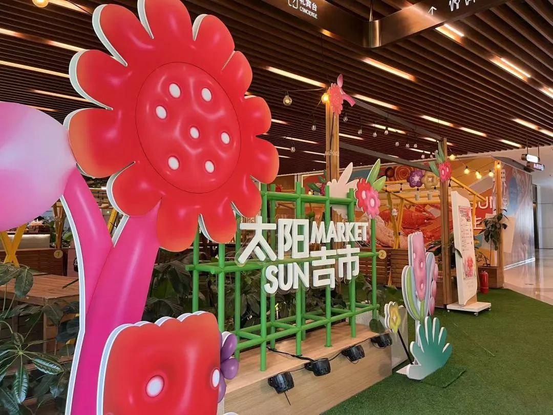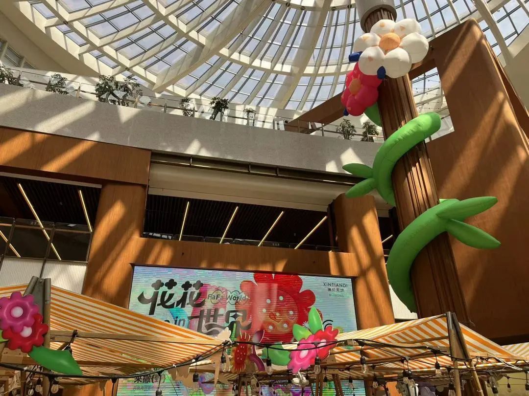 来到太阳宫5楼就仿佛踏入了“花花世界”一抬头,你就能看见两朵巨型气膜花攀援而上随处可见的花朵元素、从天幕洒下的温暖阳光构成一幅活力春日场景让人流连忘返