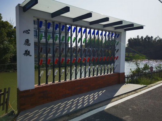 一路向南,来到第五站,阳光下,一排排五颜六色的“心愿瓶”熠熠生辉。这是护民村结合“我为群众办实事”和“四百”常态化活动,创新“心愿瓶”制度的产物。“心愿瓶”,是村民和村委的新桥梁,是村委了解村民所思所想所盼所愿的又一途径。在这里,村民可以在瓶子里放入日常救助类、心理关怀类、奇思妙想类等各种心愿和建议,村委在收取后,会组织探讨其可行性并实施。当村民看到实施的项目正是自己的心愿或建议时,所获得的成就感、幸福感,正是“心愿瓶”所乐见的吧。