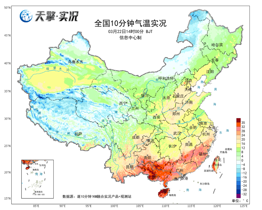 而在冷空气到来之前, 华南则经历今年以来最暖热的时段,今天下午广西至海南气温实况图上热到发红。15时08分,海南澄迈最高气温40℃,成为今年以来首个40℃的国家站点。截至16时,海口37.2℃,为今年来省会级城市中首个35℃;南宁34.4℃,为当地今年以来气温首次上30℃ 。