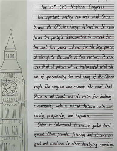2022年11月18日,作为本届读书节的第一项活动,书法比赛在各班级顺利进行。全校600多位师生共同参与了此次比赛。他们之中,有的已有一定的书法基础,有的书写技巧还有待提高,但这些都不妨碍师生们参与的热情。他们所书写的字体或刚毅、或柔美、或飘逸、或潇洒,都体现出不同的风格特点。