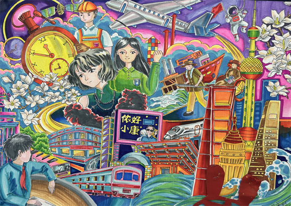 本届读书节绘画比赛以歌颂“家乡十年变化”为主题,全面展现新时代协和教科青少年热爱中国共产党、热爱祖国、热爱人民、热爱艺术、热爱生活的精神风貌。同学们用手中的画笔、多彩的颜料、新奇的构思,描绘祖国、家乡十年间各个领域的飞速发展。
