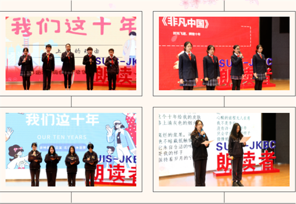 2023年2月21日,作为本届读书节“我们这十年”系列活动之一的朗读者比赛在报告厅拉开帷幕。国内部初高中、BC课程部共八组选手通过年级学部选拔,进入到读书节朗诵者决赛中。选手们伴着婉转的旋律,和着铿锵有力的节拍,声情并茂地朗诵了《读中国》、《爱上海》、《我们这十年》等诗歌,同学们饱含深情的述说祖国家乡十年的发展,那融入字里行间的深深爱国情令人激动和澎湃。
