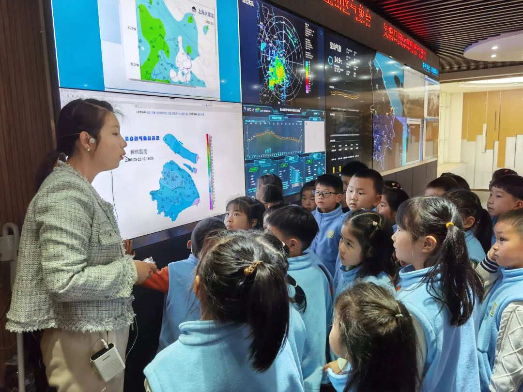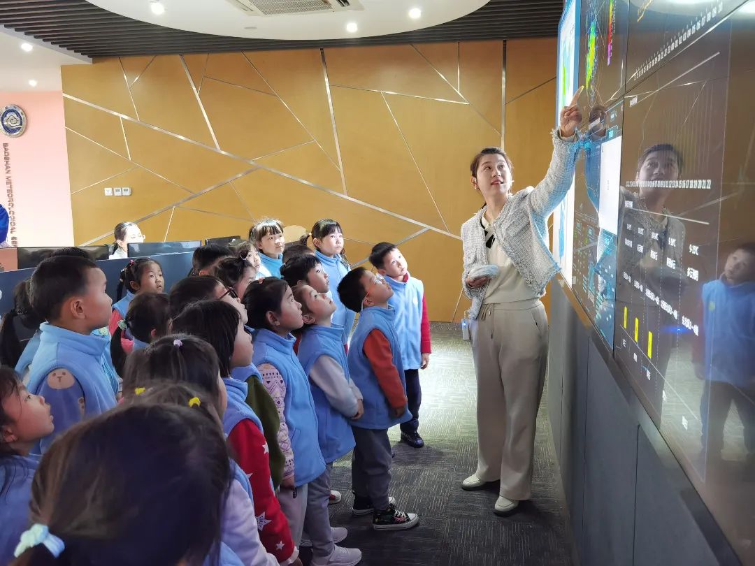3月22日上午,在宝山区气象局,来自四季万科幼儿园的孩子们在专业老师的带领下参观宝山区气象科普馆。老师用生动形象的语言向孩子们进行气象知识的讲解和互动,小朋友们通过竞猜的方式学会辨认气象符号,大家竞相举手参与,现场气氛热烈。