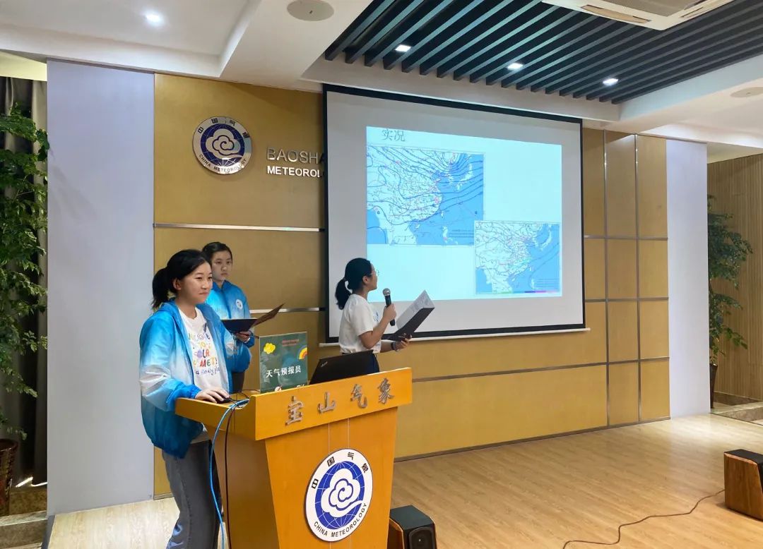此外,宝山区气象局面向全区中小学生的首个“气象科普职业体验”研学课程同步发布。把“职业体验”概念引入到气象科普活动中,研发了面向青少年团体的科普职业体验课程,例如:气象观测员、气象新闻主播、天气预报员、气象新闻记者等。学生选择自己感兴趣的岗位,通过亲自动手操作、独立完成岗位任务,开展一次有趣的职业体验。这种创新科普模式,打破以往气象科普只停留在参观讲解的层面,让小朋友在实践中享受科学,培养青少年的气象科学思想和探索能力。