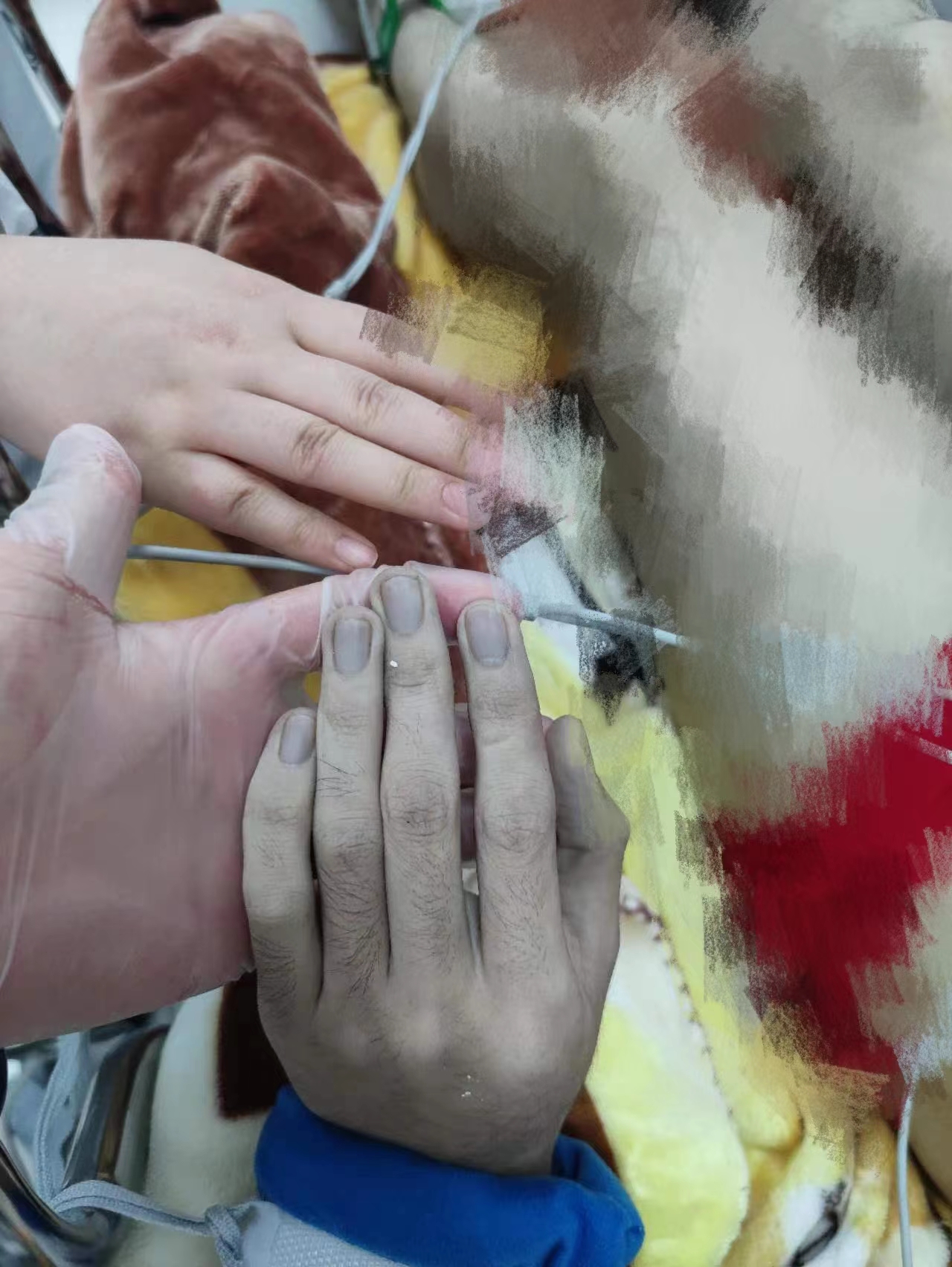 救治团队成员之一、急诊医学科护士陈娅为患者抽血时,注意到一个重要的细节——除了呼吸衰竭,嘴唇、甲床、皮肤发乌外,患者连血液也呈现“紫黑色”,十分符合亚硝酸盐中毒的特征。