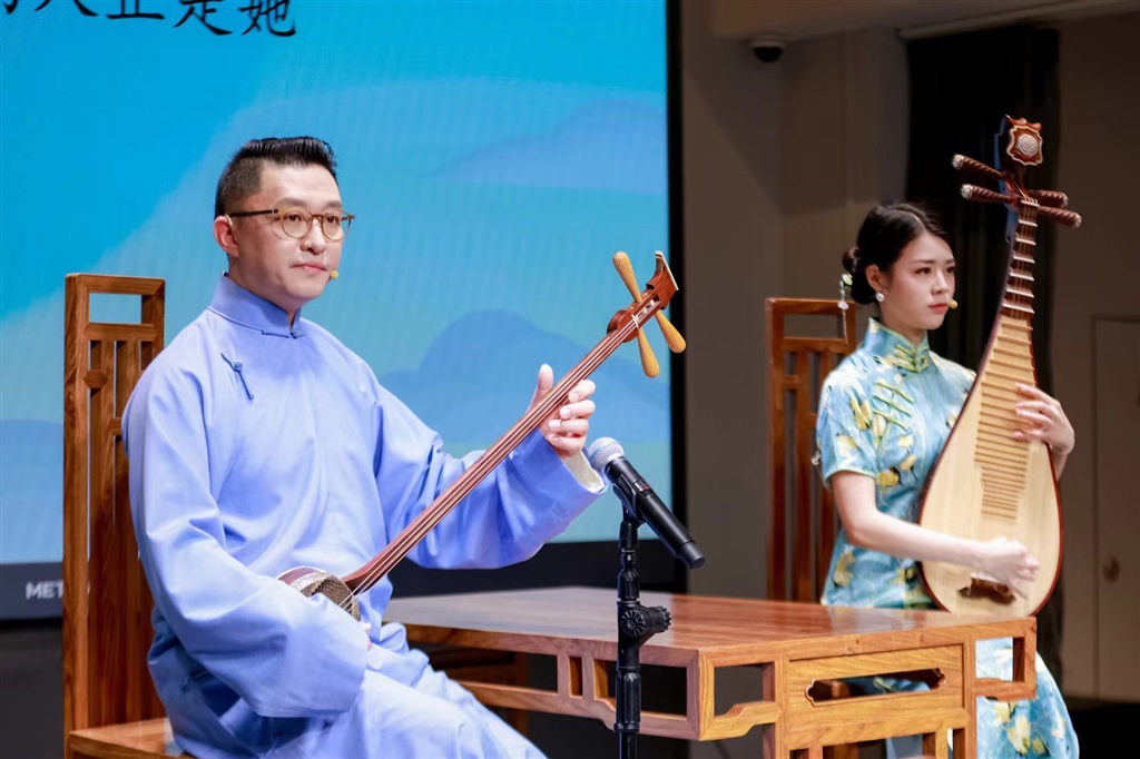 活动最后,百年海派建筑里唱响了韵味十足的江南评弹。上海评弹团团长高博文与优秀青年文艺家陆锦花、新生代青年演员郑鸣秋,合作演出了陆澹安先生改编的评弹经典作品《啼笑因缘·初约》,以及评弹融合乐曲《声声慢》。接下来,上海评弹团的优秀演员还将走进虹口北外滩河滨大楼会客厅、嘉兴路街道社区文化活动中心等,为虹口市民带去经典评弹演绎。