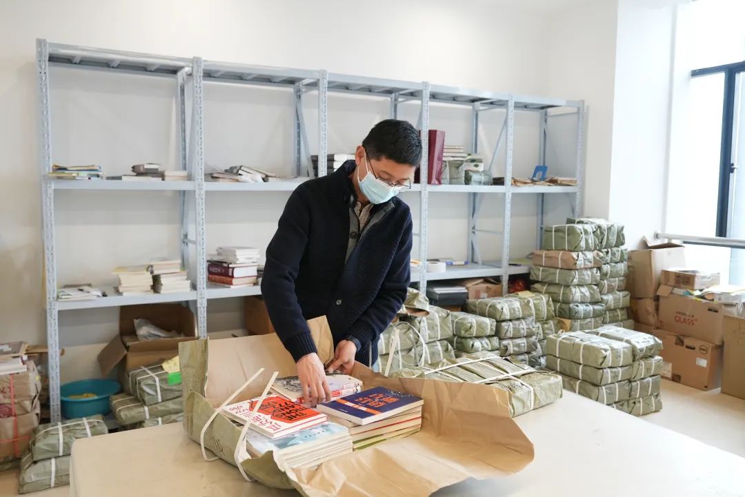 工作人员检查入库图书