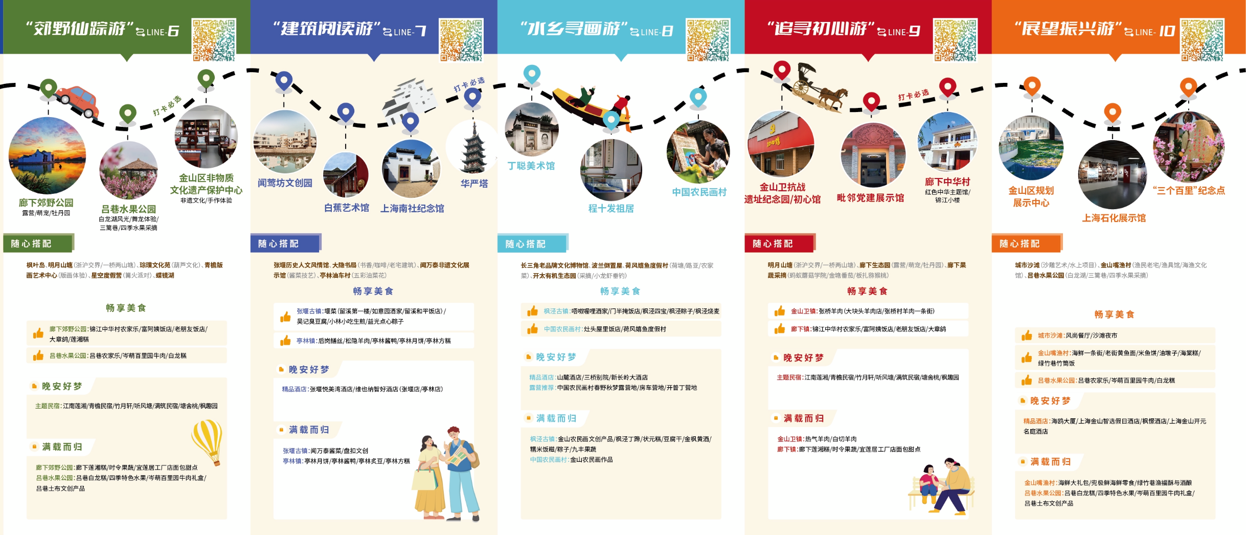 金山区文旅局副局长陈忠介绍,“美丽湾区 如画金山”10条官方推荐主题游线是2023年特定游线产品,根据金山现有的各类资源,针对不同人群,量身定制了景区、餐饮、住宿等产品推荐,让游客深度领略金山的人文风光。