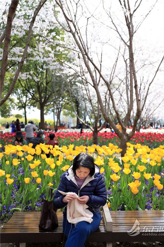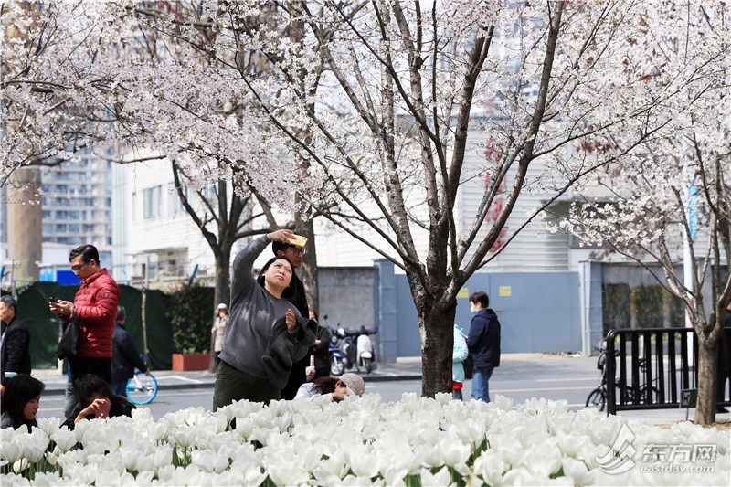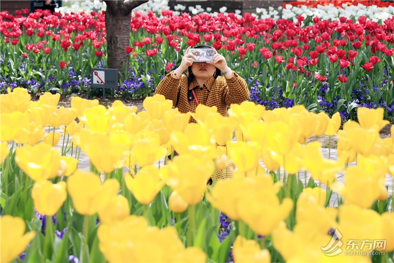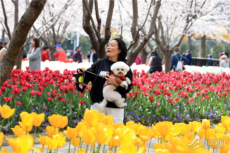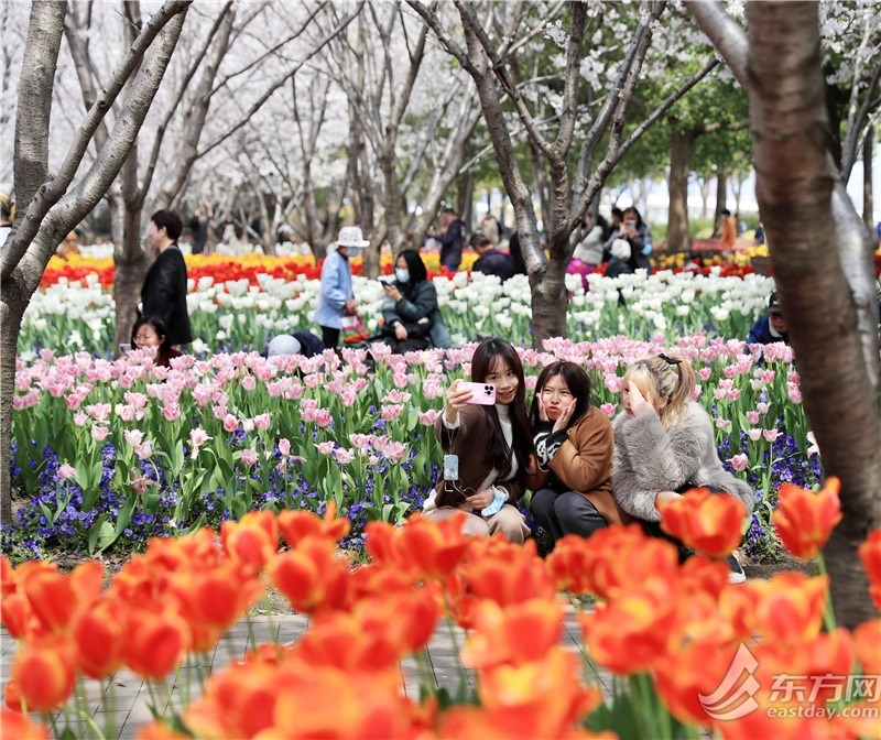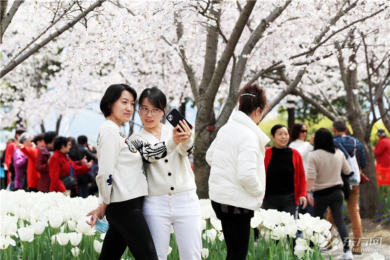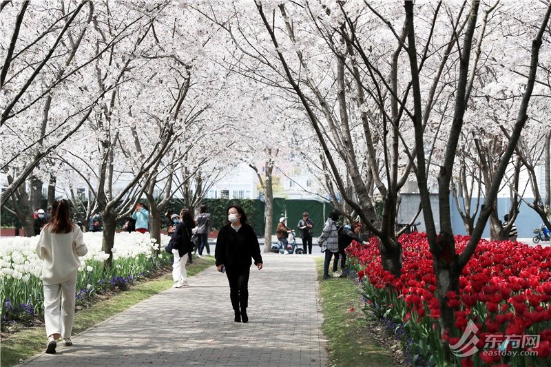 东方网记者柏可林3月27日摄影报道:阳春三月,黄浦滨江的琴键春园已到了最美时刻。万千朵郁金香与成排樱花互相呼应,郁金香温柔恬雅,樱花飘飞似雪,樱花加郁金香的组合让人目不暇接、流连忘返。