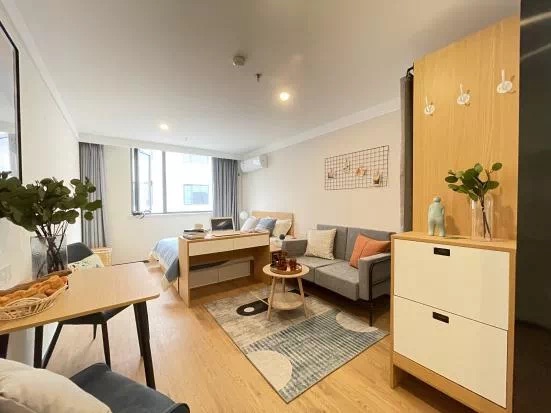 “拾·光”系列平均面积35平米,均价每月3500元。重在色彩淡雅,清新舒适。房间以木色为基调,东方的风韵与艺术的雅致共同营建出空间清宁澄净、古朴秀雅的气质美学,平朴清贵的木色温润为其增加调性。公寓内有鞋柜、梳妆台、操作台、餐桌、卫生间、卧室、衣柜、全身镜等,配有阳台,可以眺望景色,拥抱阳光,享受人生美好“拾·光”。