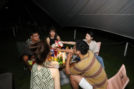 等到夜幕降临,进入在草坪上搭建的帐篷里,吃着烧烤,喝着啤酒,聊聊天看看星空是何等惬意。不想在户外饮食,也可以选择在一旁的羊咩咩农家乐,吃上最正宗的羊肉美味,绝对让你拍手称绝。