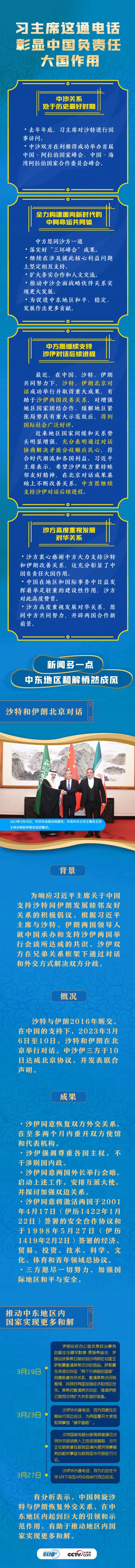 本次通话提到了哪些要点?备受各方关注的“沙特、伊朗北京对话”的背景、具体情况和成果是什么?央视网《联播+》特推出长图解,与您一同学习。