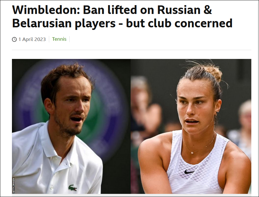 时隔一年,温网再度给俄罗斯运动员开绿灯,引发了乌克兰方面强烈不满。