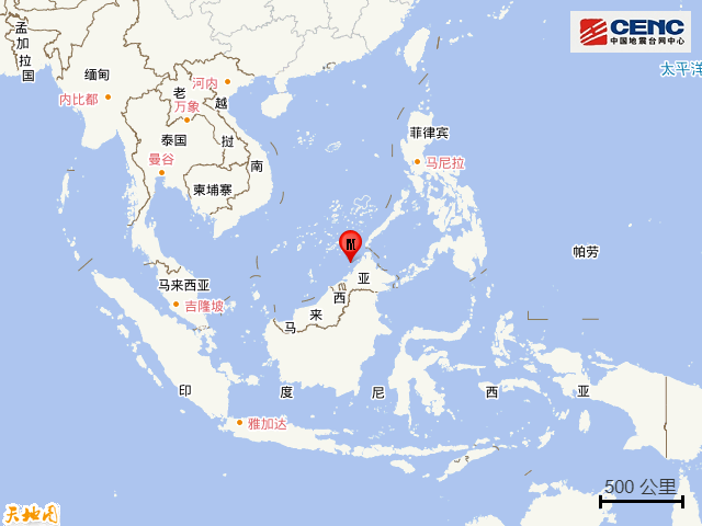 速报参数:据中国地震台网正式测定,4月3日3时32分在南海海域发生6.1级地震,震源深度600公里,震中位于北纬6.50度,东经115.80度。
