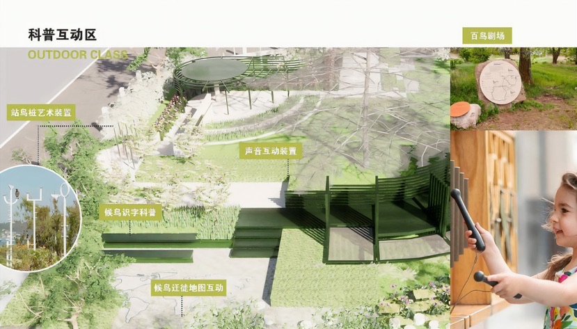 为进一步促进人与自然和谐共生,在对西园生境花园进行设计时,根据花园的主题打造了不同的区域功能。第三方设计团队工作人员表示,“比如科普互动区域设有候鸟识字科普、候鸟迁徙地图互动等。通过人性化设计,帮助市民更多地了解鸟类,亲近自然。”