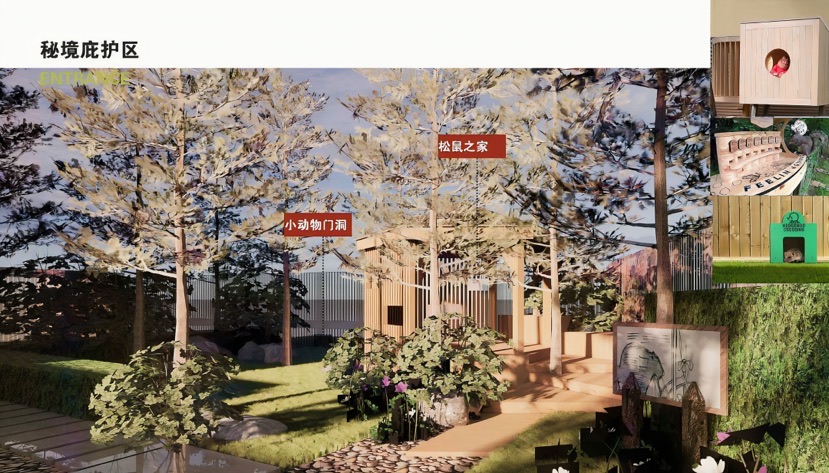 生境花园集观赏性、教育性和户外休闲功能于一体,既促进生物多样性融入社区绿色低碳慢生活,也为城市野生动物提供栖息地。岐山村的生境花园,以本土物种赤腹松鼠为主题,充分考虑城市小动物的栖息环境,为洋房区里的“小邻居们”留出适宜的生活空间。
