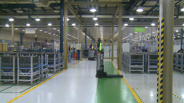 自动物流车来回穿梭,机器人自动上下物料,嘉定智能工厂未来感十足
