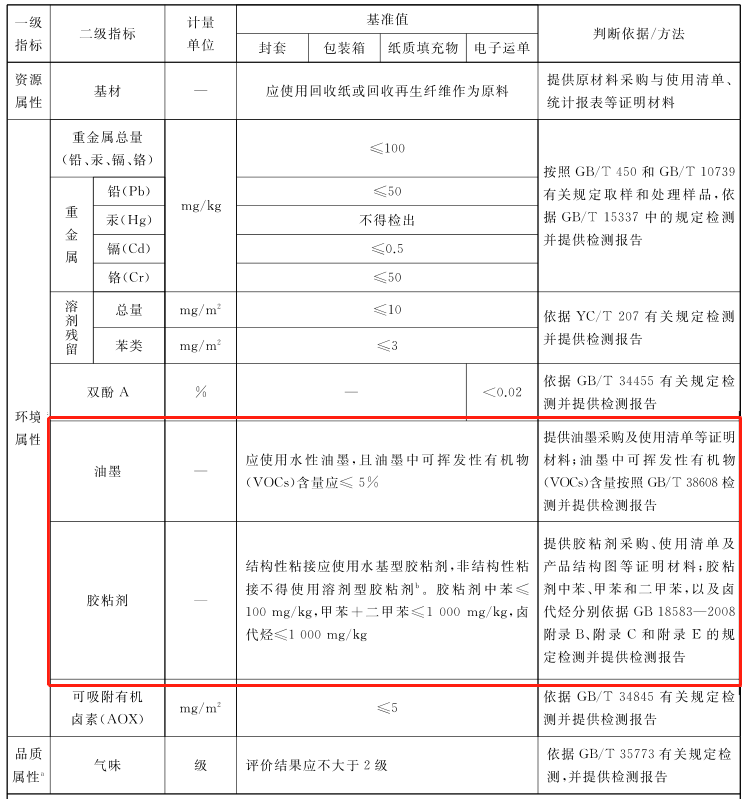 封套、包装箱、纸质填充物和电子运单的评价指标要求