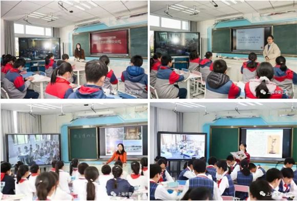 根据办学需要,集团推进干部、教师交流,合理配置教师资源,采用“四教”方式促进教师柔性流动,加强对集团成员校的指导,即支教、走教、带教、跟教。另一方面,集团四校之间建设涵盖课堂直播、互动、资源共享等功能的、能有效地支撑远程课堂教学、教师协作教研的远程同步互动教学系统,并开展了多次“1对1”、“1对2”或“1对3”远程同步互动课堂实践。