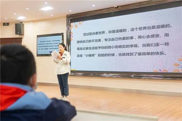 政教主任张丹凤对心理季中“以‘书’润心,阅见美好”活动中即将开展的我与导师共读一本书、分年级阅读打卡等作了讲解与安排,鼓励学生与教师在共读书籍中汲取心灵能量。
