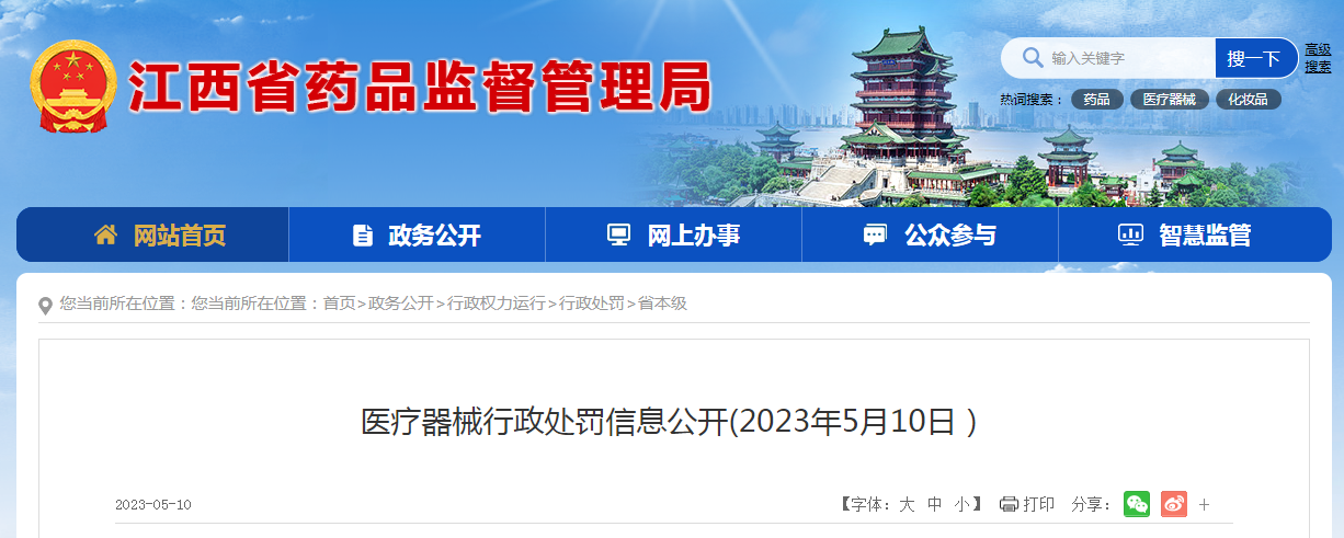 江西省药监局公开医疗器械行政处罚信息(赣药监处罚[2023]33号)