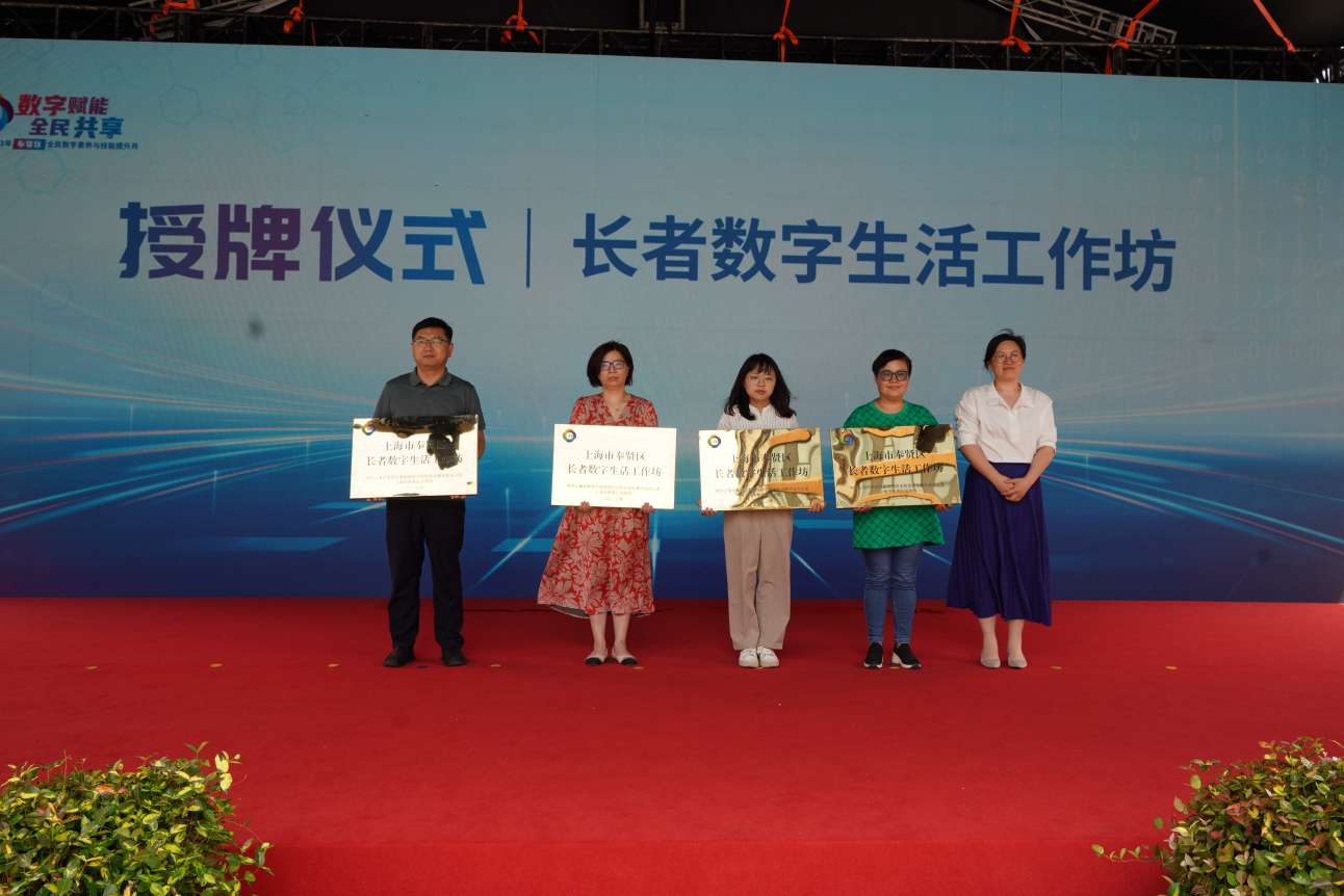 在今天的活动现场,主办方为奉贤区老年大学等首批区级“长者数字生活工作坊”授牌,并对首届奉贤区老年人短视频大赛十佳优秀作品获奖者进行表彰,四位在国家级和市级学生信息素养提升实践活动中获奖的“数字小达人”为勇敢拥抱数字时代、跨越“数字鸿沟”的爷爷奶奶们颁奖,老少牵手玩转数字化生活。