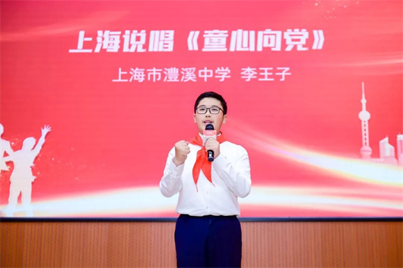 上海市澧溪中学李王子用上海说唱的方式讲述《童心向党》的故事。