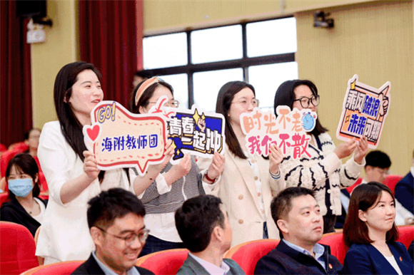 每位青年教师的后援团点燃了活动氛围,成为了一道道靓丽风景线。